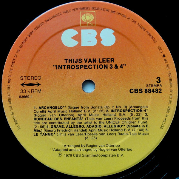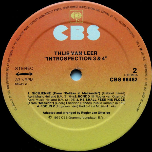 Phonographic Copyright (p) CBS Grammofoonplaten B.V. Copyright (c) CBS Grammofoonplaten B.V. Pressed By CBS, Haarlem Recorded At Dureco Studio Lacquer Cut At CBS, Haarlem