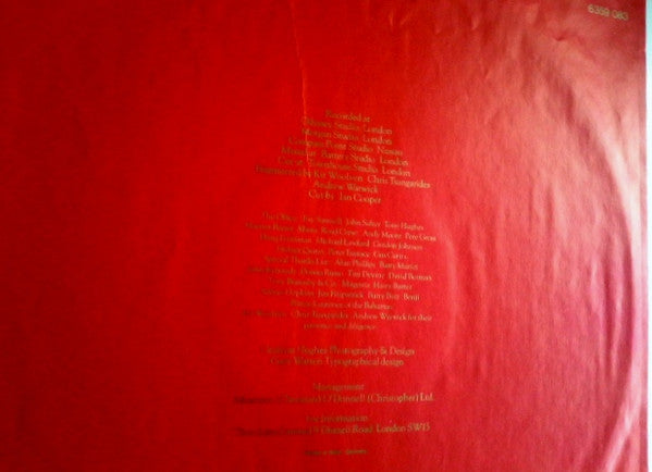 Label says 'Made in West Germany'. Comes with red paper inner sleeve with golden printing. Recorded at: Odyssey Studio London; Morgan Studio London; Compass Point Studio Nassau. Mixed at Battery Studio London. Cut at: Townhouse Studio London. Published by: Chappells / Pippin The Friendly Ranger Music Co. Limited