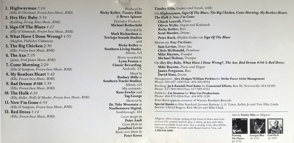 Trouble Time album for sale by Tinsley Ellis was released Feb 10, 1992 on the Alligator label. Recorded at Triclops Sounds Studios and Southern Living Studio, Atlanta, Georgia. Trouble Time songs Personnel: Tinsley Ellis (vocals, guitar); Peter Buck (guitar); Sam Levine (tenor saxophone); Mike Haynes, Michael Holton (trumpet); Chris McDonald (trombone); Mike Boyette (piano, organ); Chuck Leavell (piano); Oliver Wells (organ, keyboards); Ricky Keller, James Ferguson (bass); Scott Meeder, David Sims (drums). Producers: Ricky Keller, Tinsley Ellis, Bruce Iglauer.
