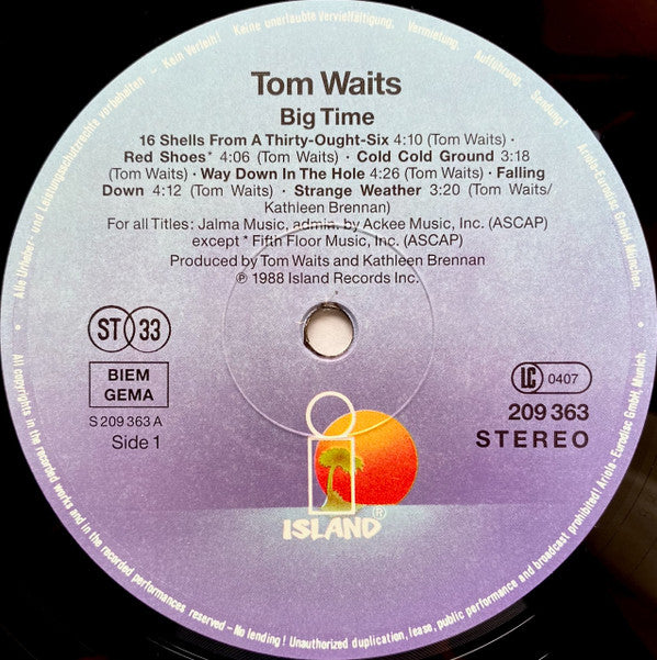 A1. 16 Shells From A Thirty-Ought-Six A2. Red Shoes A3. Cold Cold Ground A4. Way Down In The Hole A5. Falling Down A6. Strange Weather B1. Big Black Mariah B2. Rain Dogs B3. Train Song B4. Telephone Call From Istanbul B5. Gun Street Girl B6. Time