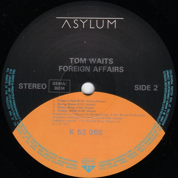 Recorded At Filmways/Heider Recording Mastered At Elektra Sound Recorders Published By Warner Bros. Music Ltd. Published By B. Feldman & Co. Ltd. Phonographic Copyright (p) Elektra/Asylum Records Copyright (c) Elektra/Asylum Records Made By WEA Musik GmbH Lacquer Cut At Strawberry Mastering Pressed By Record Service Alsdorf