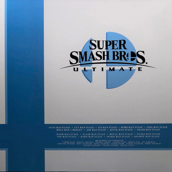 A1. Guts Man Stage (MM1) A2. Cut Man Stage (MM1) A3. Ice Man Stage (MM1) A4. Bomb Man Stage (MM1) A5. Fire Man Stage (MM1) A6. Mega Man 2 Medley (MM2) A7. Metal Man Stage (MM2) A8. Air Man Stage (MM2) A9. Quick Man Stage (MM2) A10. Crash Man Stage (MM2) . SUPER SMASH BROS. ULTIMATE - MEGA MAN SELECTIONS B1. Wood Man Stage (MM2) B2. Flash Man Stage (MM2) B3. Metal Man Stage (MM2) B4. Snake Man Stage (MM3) B5. Top Man Stage (MM3) B6. Hard Man Stage (MM3) B7. Spark Man Stage (MM3) B8. Shadow Man Stage (MM3)