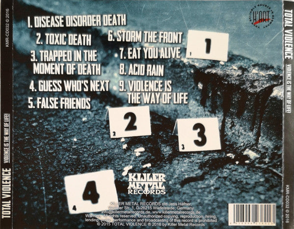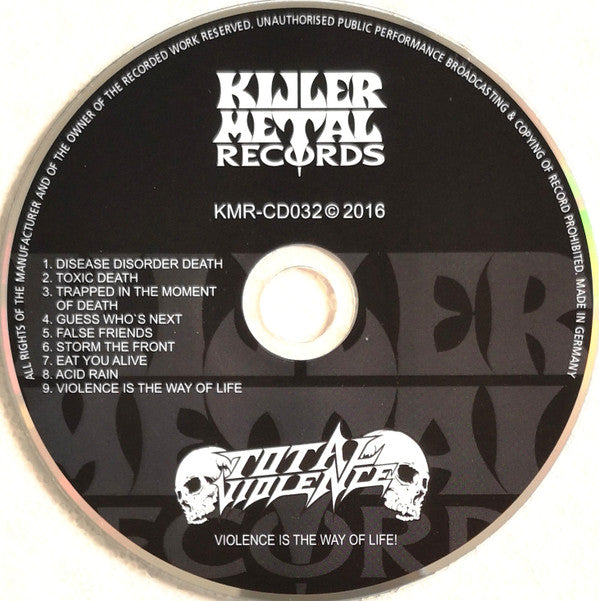 Manufactured By WWW.DISC-MEDIA.DEGlass Mastered At EDC, GermanyRecorded At Absurd StudioMixed At Absurd StudioCopyright (c) Total ViolencePhonographic Copyright (p) Killer Metal RecordsPublished By Killer Metal RecordsData provided by Discogs