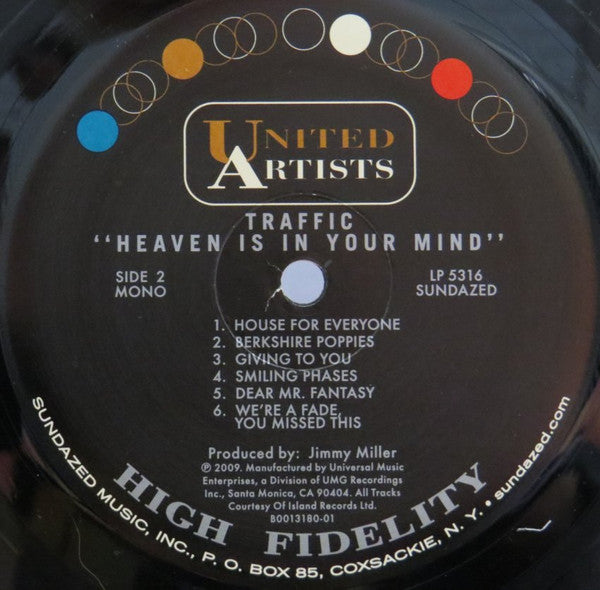A1. Paper Sun 3:21 A2. Dealer 3:23 A3. Coloured Rain 2:41 A4. Hole In My Shoe 2:48 A5. No Face, No Name And No Number 3:29 A6. Heaven Is In Your Mind 4:06 B1. House For Everyone 2:01 B2. Berkshire Poppies 2:50 B3. Giving To You 4:03 B4. Smiling Phases 2:35 B5. Dear Mr. Fantasy 5:33 B6. We're A Fade, You Missed This 0:53