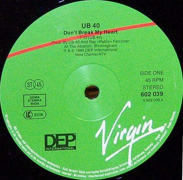 A. Don't Break My Heart (Extended Version) 7:12B. Mek Ya Rok (Dub Mix) 6:19