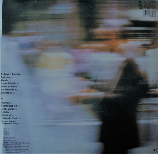 A1. Treibjagd - Opening 1:37 A2. Partisanen 4:14 A3. Abends 4:15 A4. Ich Bin Für Dich 3:58 A5. Urlaub Im Süden 4:16 A6. Der Wind Bist Du 4:13 A7. Glut Und Eis 5:07 B1. Treibjagd 4:29 B2. Atlantis Sind Wir 5:18 B3. Jambo Jambo 4:21 B4. Sommer 3:57 B5. Nur Mit Dir 4:16 B6. Treibjagd - Finale 0:47 B7. Ihr Von Morgen (Hymne An Die Zukunft) 4:53