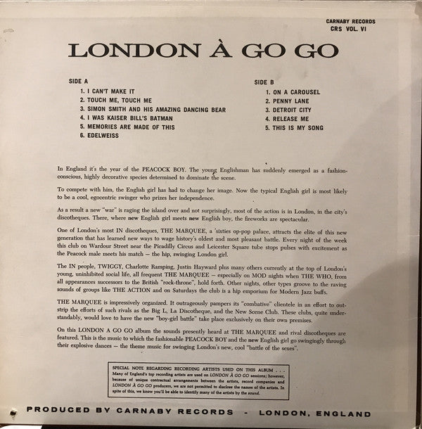 Similar to other release Various - London A-Go-Go Volume VI except for the 'S' added to catalog number and 'Stereo' as denoted on front cover of this version.