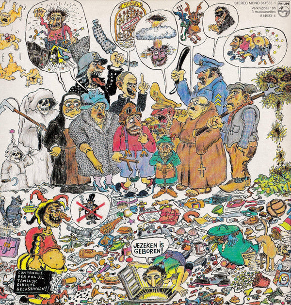 An almost identical release exists which has not "MADE IN HOLLAND" printed on the labels: [r657894 Comes with extra paper sheet inside with lyrics of several tracks. 814533-1 on back cover & spine 814 534-1 on 1st record 814 535-1 on 2nd record 814 536-1 on 3rd record