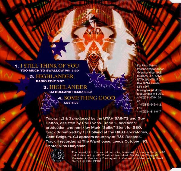 1. I Still Think Of You (Too Much To Swallow PtII) 3:302. Highlander (Radio Edit) 3:373. Highlander (CJ Bolland Remix) 6:504. Something Good (Live) 4:27