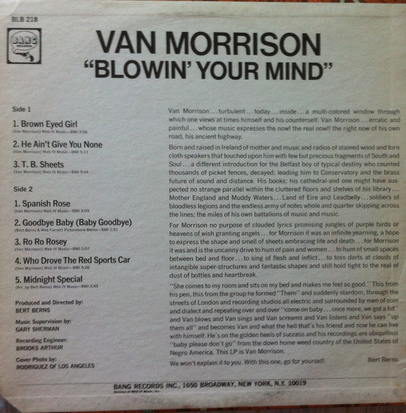 A1. Brown Eyed Girl 3:06 A2. He Ain't Give You None 5:11 A3. T.B Sheets 9:44 B1. Spanish Rose 3:09 B2. Goodbye Baby (Baby Goodbye) 2:51 B3. Ro Ro Rosey 3:07 B4. Who Drove The Red Sports Car 5:26 B5. Midnight Special 2:45
