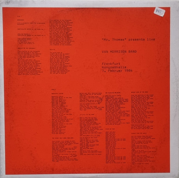 A1. Moondance A2. Inarticulate Speech Of The Heart - No. 1 A3. Into The Mystic / Inarticulate Speech - No. 2 A4. Dweller On The Threshold A5. Help Me B1. Beautiful Vision B2. The Street Only Knew Your Name B3. It's All In The Game B4. She Gives Me Religion B5. River Of Time B6. Bright Side Of The Road B7. Higher Than The World C1. Haunts Of Ancient Peace C2. Celtic Ray C3. Celtic Swing C4. Cry For Home C5. Northern Muse C6. Aryan Mist C7. Cleaning Windows D1. If You Only Knew D2. Summertime In England D3. Vanlose Stairway D4. Full Force Gale D5. Gloria