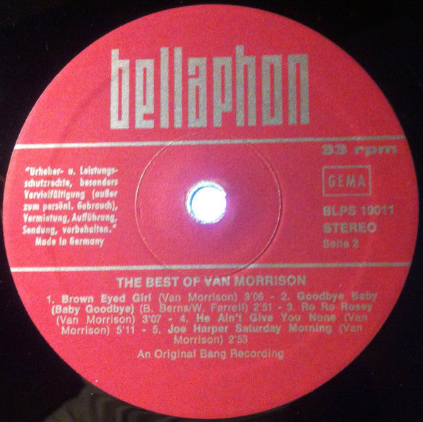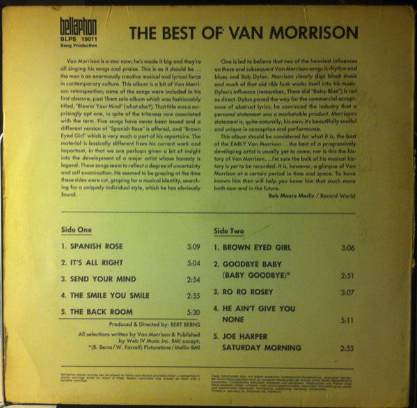 A1. Spanish Rose 3:09 A2. It's All Right 5:04 A3. Send Your Mind 2:54 A4. The Smile You Smile 2:55 A5. The Back Room 5:30 B1. Brown Eyed Girl 3:06 B2. Goodbye Baby (Baby Goodbye) 2:51 B3. Ro Ro Rosey 3:07 B4. He Ain't Give You None 5:11 B5. Joe Harper Saturday Morning 2:53