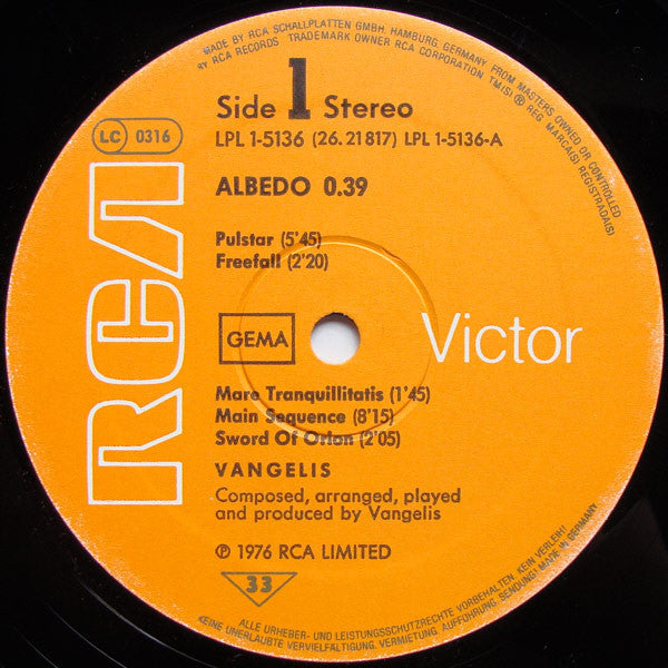 Label Code LC 0316 Price Code AO Rights Society GEMA Matrix / Runout LPL 1-5136-A Matrix / Runout LPL 1-5136-B Matrix / Runout RCA LPL1- 5136 A-1 PF Manufactured in Germany Matrix / Runout RCA LPL 1- 5136 B/1 PF Manufactured in Germany