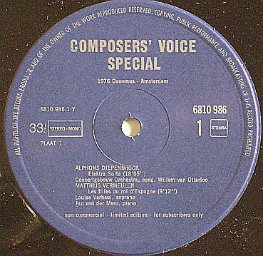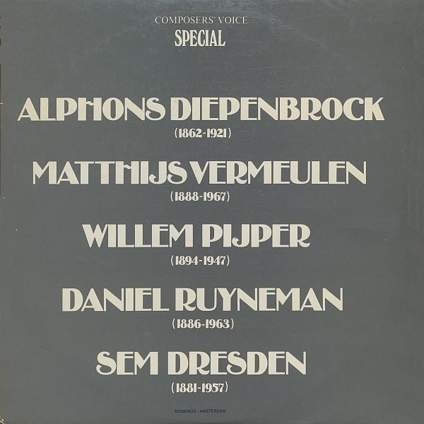 - Alphons Diepenbrock (1862-1921) Matthijs Vermeulen (1888-1967) Willem Pijper (1894-1947) Daniel Ruyneman (1866-1963) Sem Dresden (1881-1957) (2xLP, Comp, Ltd)