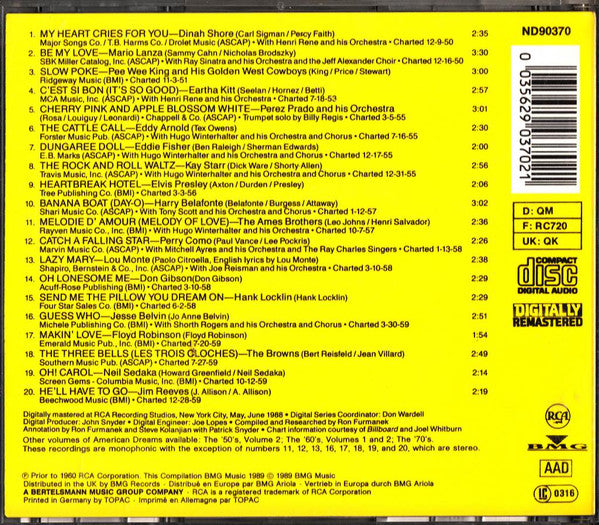1. Dinah Shore, Henri René And His Orchestra - My Heart Cries For You 2:352. Mario Lanza, Ray Sinatra And His Orchestra, Jeff Alexander Choir - Be My Love 3:303. Pee Wee King And His Golden West Cowboys - Slow Poke 3:004. Eartha Kitt, Henri René And His Orchestra - C'est Si Bon (It's So Good) 2:575. Perez Prado And His Orchestra, Billy Regis - Cherry Pink And Apple Blossom White 3:016. Eddy Arnold, Hugo Winterhalter Orchestra, Hugo Winterhalter Chorus - The Cattle Call 2:307. Eddie Fisher, Hugo Winterhalter Orchestra, Hugo Winterhalter Chorus - Dungaree Doll 2:008. Kay Starr, Hugo Winterhalter Orchestra, Hugo Winterhalter Chorus - The Rock And Roll Waltz 2:569. Elvis Presley - Heartbreak Hotel 2:0610. Harry Belafonte, Tony Scott And His Orchestra, Tony Scott And His Chorus - Banana Boat (Day - O) 3:0211. The Ames Brothers, Hugo Winterhalter Orchestra - Melodie D' Amour (Melody Of Love) 2:3612. Perry Como, Mitchell Ayres And His Orchestra, The Ray Charles Singers - Catch A Falling Star 2:2613. Lou Monte, Joe Reisman And His Orchestra - Lazy Mary 2:2914. Don Gibson - Oh Lonesome Me 15. Hank Locklin - Send Me The Pillow You Dream On 2:2916. Jesse Belvin, Shorty Rogers And His Orchestra, Shorty Rogers Chorus - Guess Who 2:5117. Floyd Robinson - Makin' Love 1:5418. The Browns (3) - The Three Bells (Les Trois Cloches) 2:4919. Neil Sedaka - Oh! Carol 2:1420. Jim Reeves - He'll Have To Go 2:19