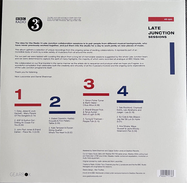 A1. Eska, Jesse Hackett, Louis Hackett - Many People Of The Songbird 3:14 A2. AGF, Gudrun Gut - Drilling An Ocean For You 5:04 A3. John Paul Jones, Erland Dahlen - Piece No. 5 3:03 B1. Diabel Cissokho, Kadiale Kouyate, Finn Peters - Talibe 5:55 B2. Kate Tempest, The Elysian Quartet - Where The Heart Is 8:02 C1. Simon Fisher Turner, Martin Baker (2) - Citius Altius 4:59 C2. Brandt Brauer Frick, Tanya Auclair - Bolt Of Light 5:06 C3. Tunng, Tinariwen - People Folk 5:15 D1. Sebastian Rochford, Chartwell Dutiro, Leo Abrahams, Jyager - Leo 5:16 D2. BJ Cole, Nils Økland - Jeg Har Så Lun En Hytte 5:01 D3. Ana Silvera, Maya Youssef, Laura Moody - Greenwich Pier 3:59