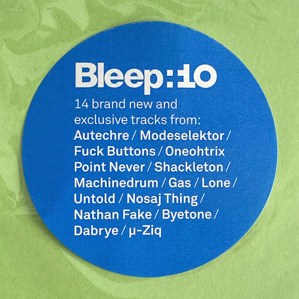 "Bleep:10 is a celebration of ten years of music on Bleep. A decade of enjoying and working with some of the best artists and labels, and hopefully conveying our love of the vibrant music community we are a part of. For this fourteen track compilation we have sought out new and unreleased gems from some of our favourite artists, all of whom continue to shape the direction of the Bleep store. Together they represent different labels, scenes and genres that are important to us."