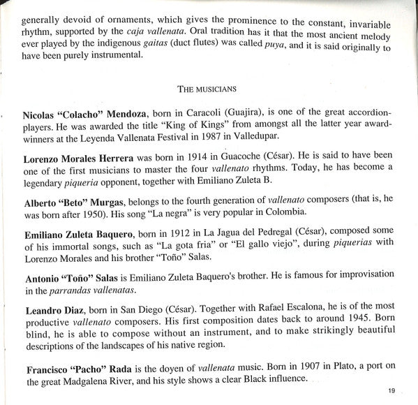Enregistrements, septembre 1994, à l'occasion du tournage du documentaire "Où chantent les accordéons, la route du Vallenate", Stéphane Jourdain, La Huit Production.