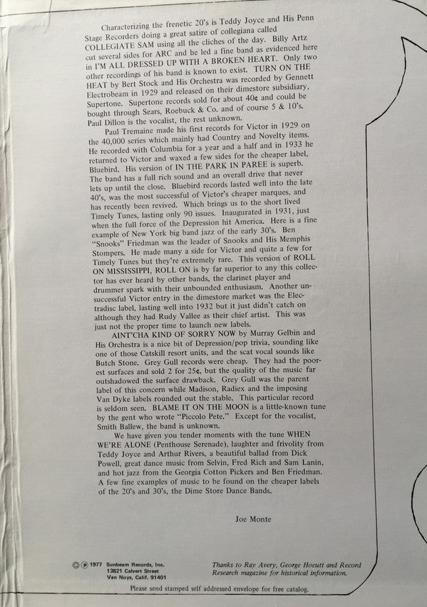C2. Teddy Joyce And His Penn Stage Recorders - Collegiate Sam
