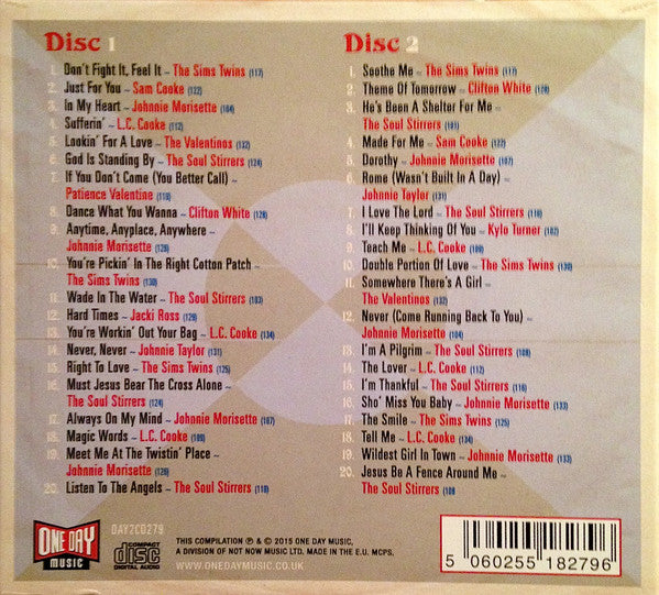 1-1. Sims Twins - Don’t Fight It, Feel It 1-2. Sam Cooke - Just For You 1-3. Johnnie Morisette - In My Heart 1-4. L.C. Cook - Sufferin’ 1-5. Valentinos - Lookin’ For A Love 1-6. The Soul Stirrers - God Is Standing By 1-7. Patience Valentine - If You Don’t Come (You Better Call) 1-8. Clifton White - Dance What You Wanna 1-9. Johnnie Morisette - Anytime, Anyplace, Anywhere 1-10. Sims Twins - You’re Pickin’ In The Right Cotton Patch 1-11. The Soul Stirrers - Wade In The Water 1-12. Jackie Ross - Hard Times 1-13. L.C. Cook - You’re Workin’ Out Your Bag 1-14. Johnnie Taylor - Never, Never 1-15. Sims Twins - Right To Love 1-16. The Soul Stirrers - Must Jesus Bear The Cross Alone 1-17. Johnnie Morisette - Always On My Mind 1-18. L.C. Cook - Magic Words 1-19. Johnnie Morisette - Meet Me At The Twistin’ Place 1-20. The Soul Stirrers - Listen To The Angels 2-1. Sims Twins - Soothe Me 2-2. Clifton White - Theme Of Tomorrow 2-3. The Soul Stirrers - He’s Been A Shelter For Me 2-4. Sam Cooke - Made For Me 2-5. Johnnie Morisette - Dorothy 2-6. Johnnie Taylor - Rome (Wasn’t Built In A Day) 2-7. The Soul Stirrers - I Love The Lord 2-8. Kylo Turner - I’ll Keep Thinking Of You 2-9. L.C. Cook - Teach Me 2-10. Sims Twins - Double Portion Of Love 2-11. Valentinos - Somewhere There’s A Girl 2-12. Johnnie Morisette - Never (Come Running Back To You) 2-13. The Soul Stirrers - I’m A Pilgrim 2-14. L.C. Cook - The Lover 2-15. The Soul Stirrers - I’m Thankful 2-16. Johnnie Morisette - Sho’ Miss You Baby 2-17. Sims Twins - The Smile 2-18. L.C. Cook - Tell Me 2-19. Johnnie Morisette - Wildest Girl In Town 2-20. The Soul Stirrers - Jesus Be A Fence Around Me
