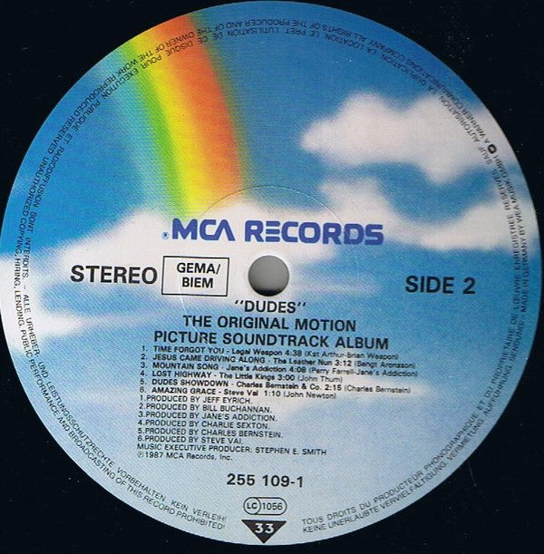 A1. Keel - Rock 'N' Roll Outlaw 3:21 A2. The Vandals - Urban Struggle 5:22 A3. W.A.S.P. - Show No Mercy 3:37 A4. Simon Steele & The Claw - Vengeance Is Mine 3:29 A5. Megadeth - These Boots Are Made For Walkin' 4:02 B1. Legal Weapon - Time Forgot You 4:38 B2. The Leather Nun - Jesus Came Driving Along 3:12 B3. Jane's Addiction - Mountain Song 4:08 B4. Little Kings - Lost Highway 3:00 B5. Charles Bernstein - Dudes Showdown 2:15 B6. Steve Vai - Amazing Grace 1:10