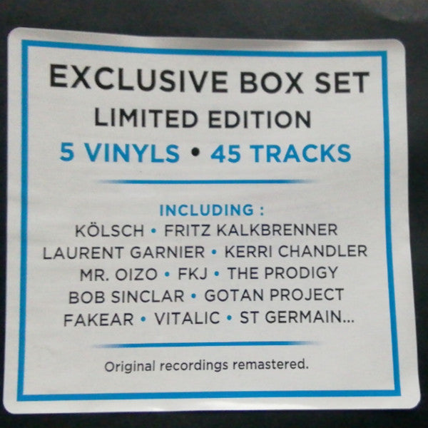 A1. Kölsch - Gray 4:53 A2. Mr. Scruff - Get A Move On! 3:26 A3. NUfrequency - Fallen Hero 7:40 A4. Fritz Kalkbrenner - Facing The Sun 5:13 B1. Fakear - La Lune Rousse 3:45 B2. Scott Grooves - Mothership Reconnection (Daft Punk Remix) 3:12 B3. Isolée - Brazil.com (Freaks Reinterpretation) 7:24 B4. Laurent Garnier - Wake Up 7:38 C1. Bob Sinclar - The Ghetto 6:33 C2. Tom & Joyce - Queixume (Master At Work Mix Edit) 3:41 C3. ZAABRISKIE - Higher 3:10 C4. General Elektriks - Raid The Radio 3:49 C5. Alex Gopher - The Child 4:34 D1. José Padilla - Bossa Rosa 3:53 D2. Yuksek, Bertrand Burgalat - Icare 3:42 D3. The XX - Hold On (Jamie XX Remix) 6:11 D4. The Hacker - Classic Revisited Part 3 6:09 E1. DJ Gregory - Tourment D'Amour 7:10 E2. St Germain - Alabama Blues 3:50 E3. Sandy B - Make The World Go Round 3:48 E4. Purple Disco Machine - Walls 3:45 E5. Avicii - Sweet Dreams 2:53 F1. Zero 7 - This World 5:37 F2. Bicep - Glue 4:29 F3. Moderat - A New Error 6:07 F4. Kerri Chandler - Get Up 5:33 G1. FKJ (French Kiwi Juice), Masego - Tadow 5:02 G2. Gotan Project - Diferente 5:23 G3. Superfunk - Lucky Star 3:50 G4. Mr. Oizo - Flat Beat 3:54 G5. Vitalic - Poisen Lips 3:42 H1. Thievery Corporation - It Takes A Thief 4:09 H2. Âme - Rej 8:08 H3. Claptone - No Eyes 4:02 H4. Mary Davidson - Work It 4:46 I1. Bonobo - Terrapin 4:40 I2. DJ Cam - Birds Also Sing For Anamaria 4:15 I3. Kid Loco - A Grand Love Theme 4:03 I4. Robin S. - Show Me Love 4:12 I5. Swayzak - Make Up Your Mind 4:45 J1. The Mighty Bop - Feeling Good 4:18 J2. Quantic - Time Is The Enemy 3:40 J3. Thylacine (4) - Piany Pianino 4:33 J4. Scan X - Alpha 4:26 J5. The Prodigy - Firestarter 4:40