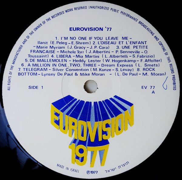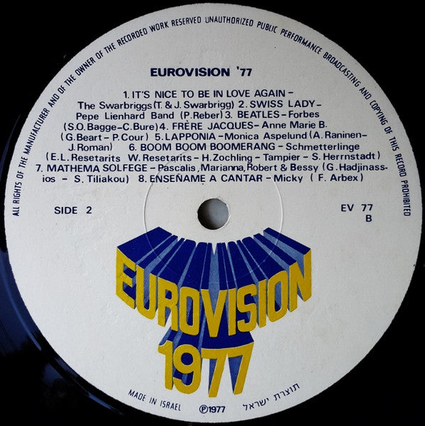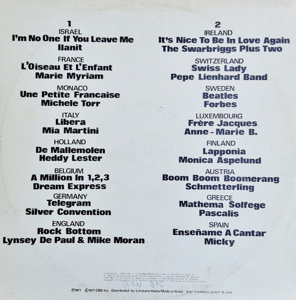 Side One : 1/ Orot Melodin Productions, 2/ Polydor, 3/ Disc Az, 4/ RCA, 5/ Ariola Benelux, 7/ Jupiter Records, 8/ Polydor.