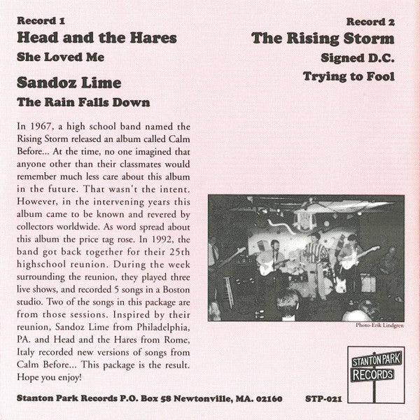 Side-stapled booklet sleeve. Tracks A & B are Rising Storm covers, tracks C & D are 1992 reunion recordings.