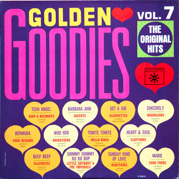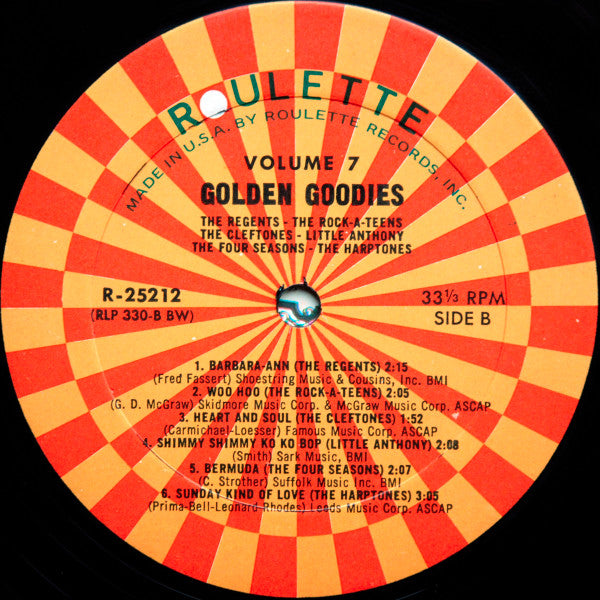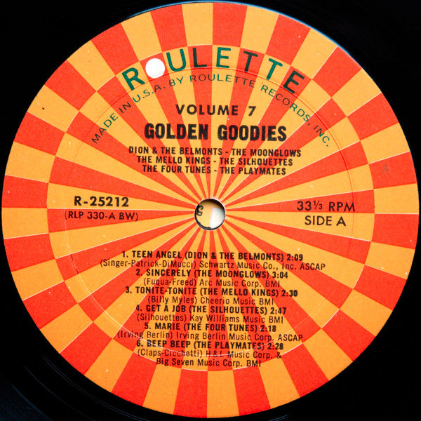 A1. Dion & The Belmonts - Teen Angel 2:09 A2. The Moonglows - Sincerely 3:04 A3. The Mello Kings - Tonite-Tonite 2:30 A4. The Silhouettes - Get A Job 2:47 A5. The Four Tunes - Marie 2:18 A6. The Playmates - Beep Beep 2:28 B1. The Regents (2) - Barbara-Ann 2:15 B2. The Rock-A-Teens - Woo Hoo 2:05 B3. The Cleftones - Heart And Soul 1:52 B4. Little Anthony & The Imperials - Shimmy Shimmy Ko Ko Bop 2:08 B5. The Four Seasons - Bermuda 2:07 B6. The Harptones - Sunday Kind Of Love 3:05