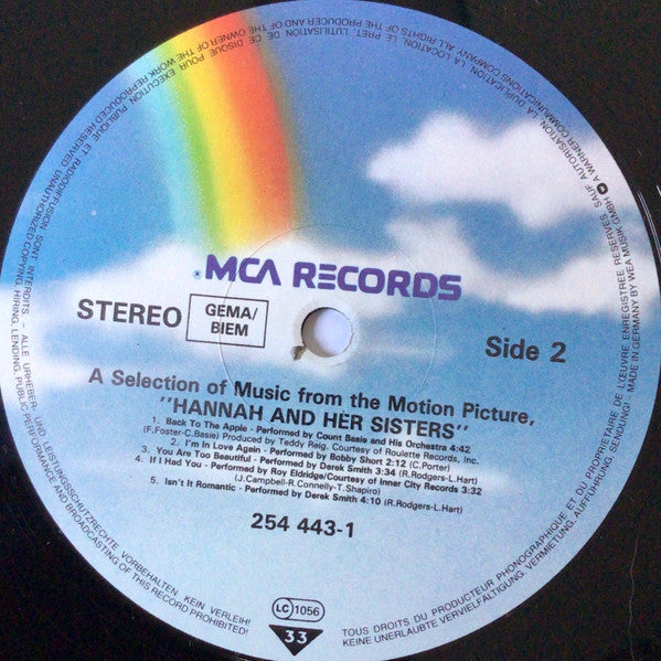 Various - Hannah And Her Sisters (A Selection Of Music From The Motion Picture) (LP, Comp)