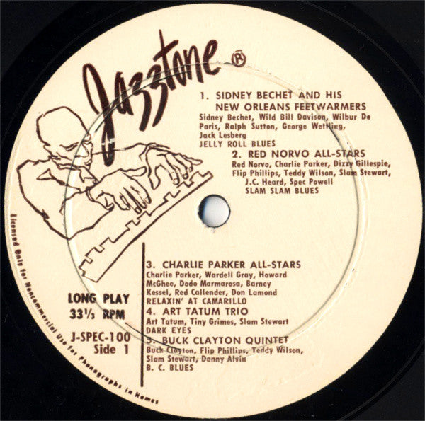 A1. Sidney Bechet And His New Orleans Feetwarmers - Jelly Roll Blues A2. Red Norvo All-Stars - Slam Slam Blues A3. The Charlie Parker All-Stars - Relaxin' At Camarillo A4. Art Tatum Trio - Dark Eyes A5. Buck Clayton Quintet - B.C. Blues B1. Coleman Hawkins Quartet - Honeysuckle Rose B2. Jack Teagarden And His Orchestra - Serenade To A Shylock B3. Erroll Garner Trio - Trio B4. Woody Herman And His Woodchoppers - Moon Burns B5. Rex Stewart And His Dixieland Jazz Band - Basin Street Blues