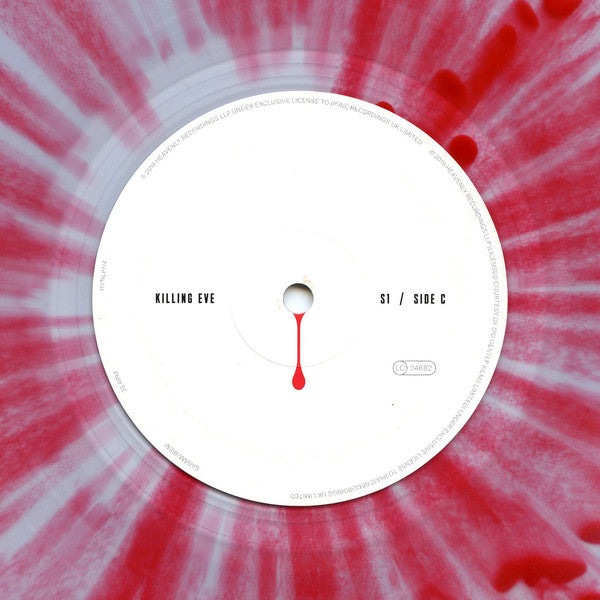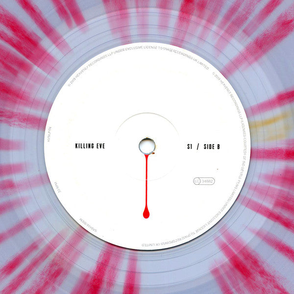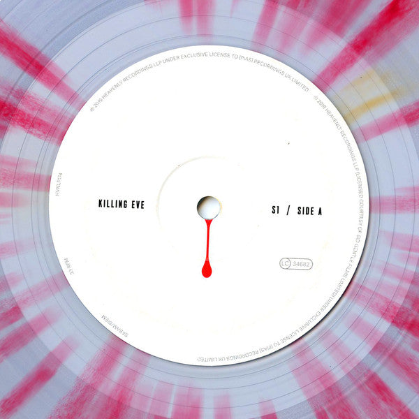 Clear vinyl with red splatter and die-cut sleeve. Gatefold sleeve with matt finish and spot gloss on “Killing Eve” logo.