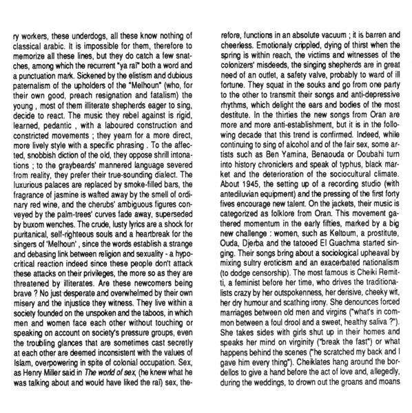 Comes in a jewel case containing an 8 page booklet describing the history of Raï music in both French and English.