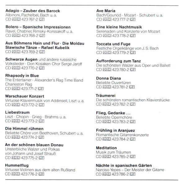 Printed in West Germany by/Imprimé en RFA par .... Made in West Germany/Fabriqué en RFA (on inlay).