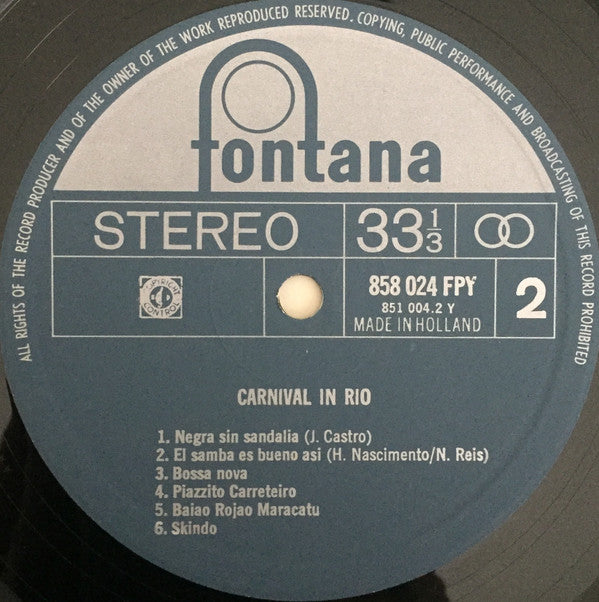 A1.4. Unknown Artist - O Nosso Amor A2. Unknown Artist - Malene Xango A3. Unknown Artist - Manha De Carnaval . Carnival In Rio B1. Unknown Artist - Negra Sin Sandalia (Nega Sem Sandalia) B2. Unknown Artist - El Samba Es Bueno Asi B3. Unknown Artist - Bossa Nova B4. Unknown Artist - Piazzito Carreteiro B5. Unknown Artist - Baiao Rojao Maracatu B6. Unknown Artist - Skindu
