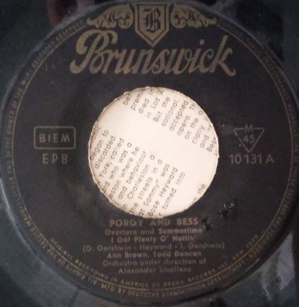 Various - Porgy And Bess Selections From The Original Cast Recording (7", EP, Mono)