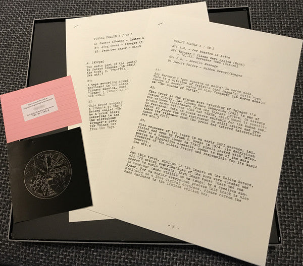 A. Justus Köhncke - System Als Schönheit B1. Jörg Sasse - Voyager (1980) B2. Jens-Uwe Beyer - Black Ocean - Blue Sea C1. Aby Warburg - Per Monstra Ad Astra C2. NASA (10) - 12.-13. November 1980 (Saturn) C3. Frank Drake (2) - Arecibo Message D. Public Folder - Golden Record / Images
