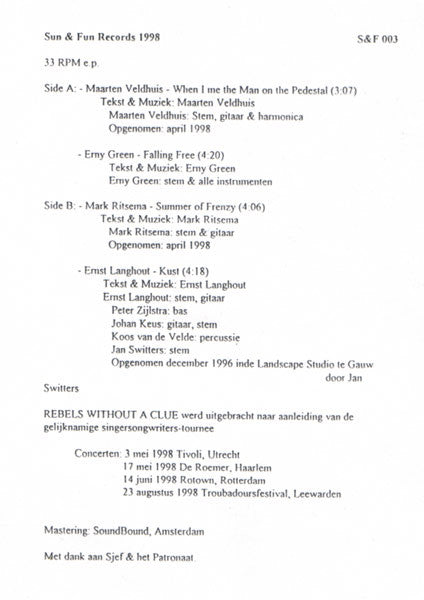 'Rebels Without A Clue' was released on occasion of the singer-songwriters tour with the same name, with concerts in Utrecht, Haarlem, Rotterdam and Leeuwarden.