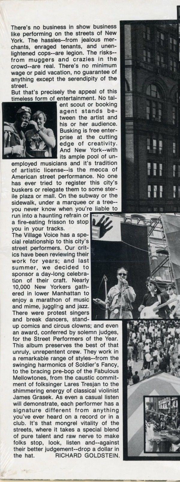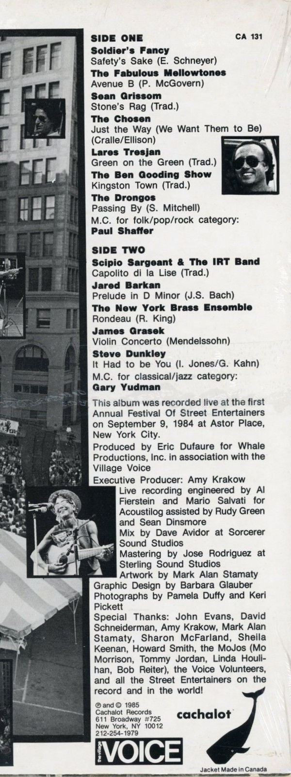 This album was recorded live at the first Annual Festival Of Street Entertainers on September 9th, 1984 at Astor Place, New York City.
