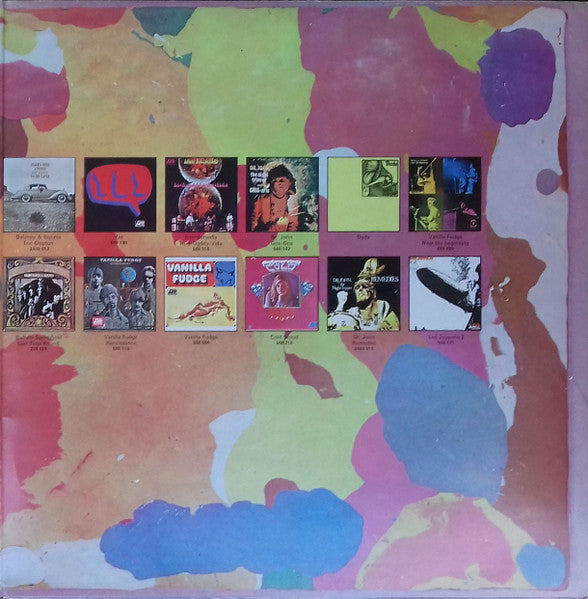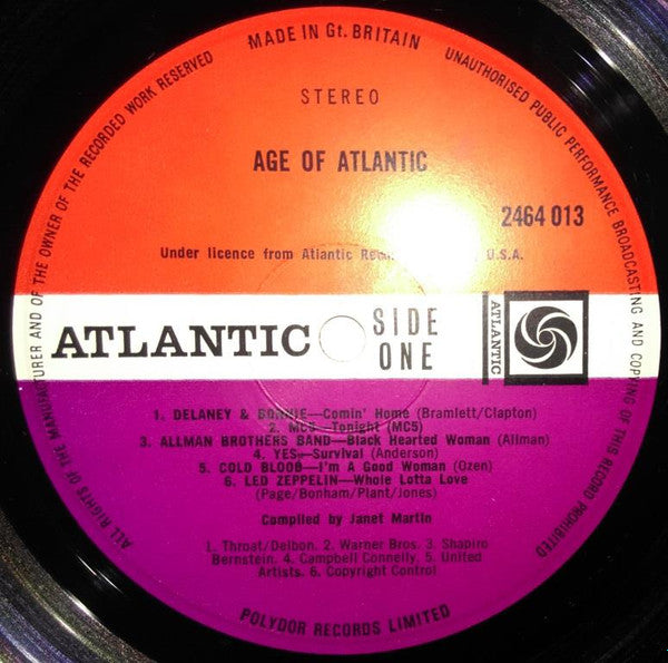 UK gatefold release, a sampler of Atlantic artists, dark plum & orange labels. Labels differ from [r6746475 eg. side 1 ℗ dates absent & compiled by credit at the bottom of the label.