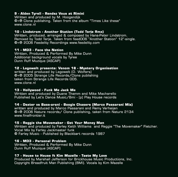 1. Photocall - Silver Clouds 3:482. Egyptian Lover - Freak-a-holic 2:413. Dharma (3) - Plastic Doll 3:484. Crazy Gang - Every Sunday 3:495. Black Devil - The Devil In Us 3:326. The Hasbeens - Make The World Go Away 3:057. Jupiter Black - We Like Moroder (Elitechnique Rmx) 3:598. Peter Black (2) - Trash (Disco Theme) 3:049. Alden Tyrell - Rendez Vous At Rimini 2:2410. Lindstrøm - Another Station (Todd Terje Rmx) 5:4211. MD III - Face The Nation 3:1712. Legowelt, Venom 18 - Mystery Organisation 4:2613. Hollywood (3) - Funk Me Jack Me 3:2514. Dexter, Marco Passarani - Boogie Chasers (Marco Passarani Mix) 3:4815. Reggie The Movemaker - Get Your Money Man 3:1416. MD III - Personal Problem 3:4817. House To House, Kym Mazelle - Taste My Love 4:53