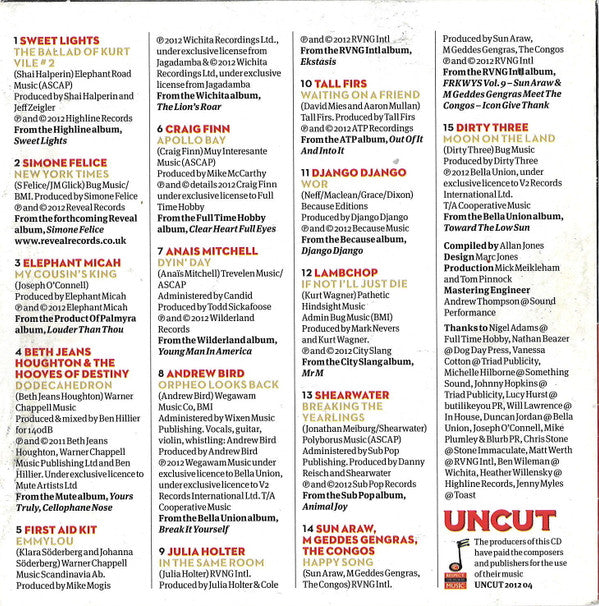 Free covermount CD with the April 2012 issue (TAKE 179) of Uncut Magazine, issued March 2012.