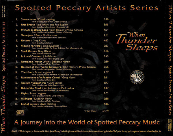 All music published by – Spotted Peccary Music (BMI) except track 1 and 17, Spotted Peccary Music and David Helpling (BMI) 3 and 10 Spotted Peccary Music and Aangelsongs (BMI) track 8 and 13 Spotted Peccary Music and ISS (BMI)