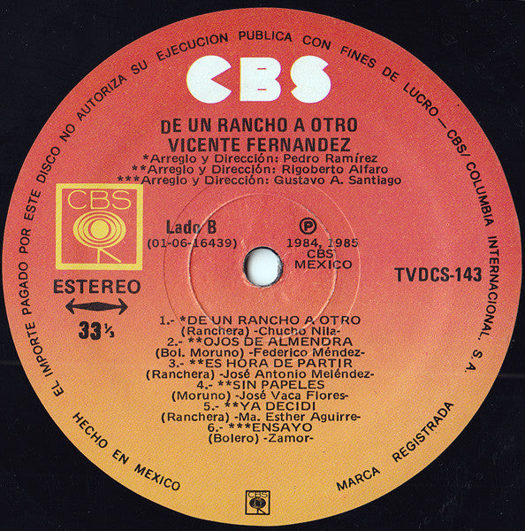 Vicente Fernandez - De Un Rancho A Otro (LP, Album)