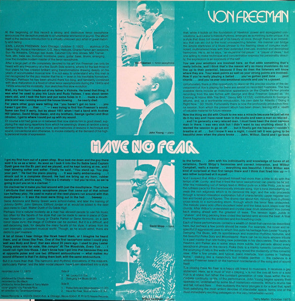 A1. Mr. Lucky 11:53 A2. Swinging The Blues 9:56 B1. Polka Dots And Moonbeams 11:37 B2. Have No Fear, Soul Is Here 12:34