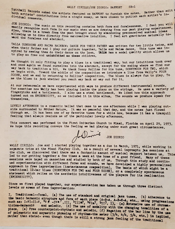 Wally Cirillo / Joe Diorio - Rapport (LP, Album)
