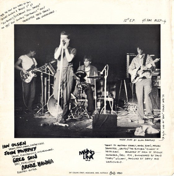 "The first 500 copies of this record contain a bonus 7" 45 "Sextronics / Eyebrows Still Shaved"