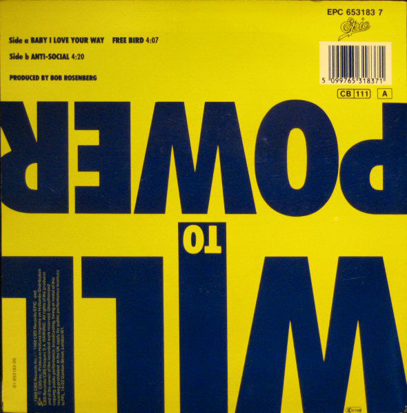 Will To Power - Freebaby (Baby, I Love Your Way/Free Bird) (7", Single)