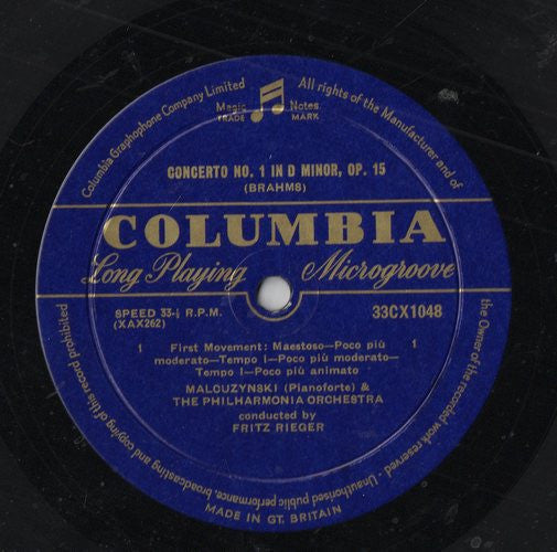 Witold Malcuzynsky And Philharmonia Orchestra Conducted By Fritz Rieger Play Johannes Brahms - Piano Concerto N° 1 (LP, Album)