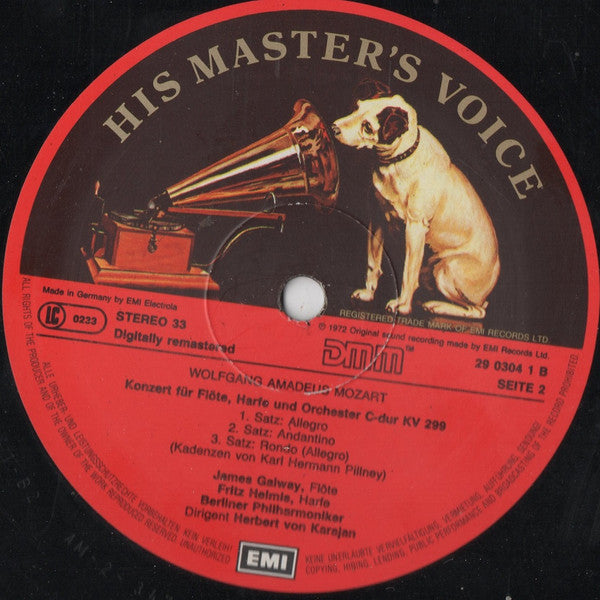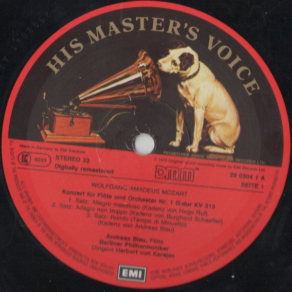 On Spine: Digitally Remastered Wolfgang Amadeus Mozart Flötenkonzert/Flute Concerto No. 1 etc Herbert von Karajan 055 EG 29 03041 *NOTE* This may indicate that it is a German production destined for UK distribution.